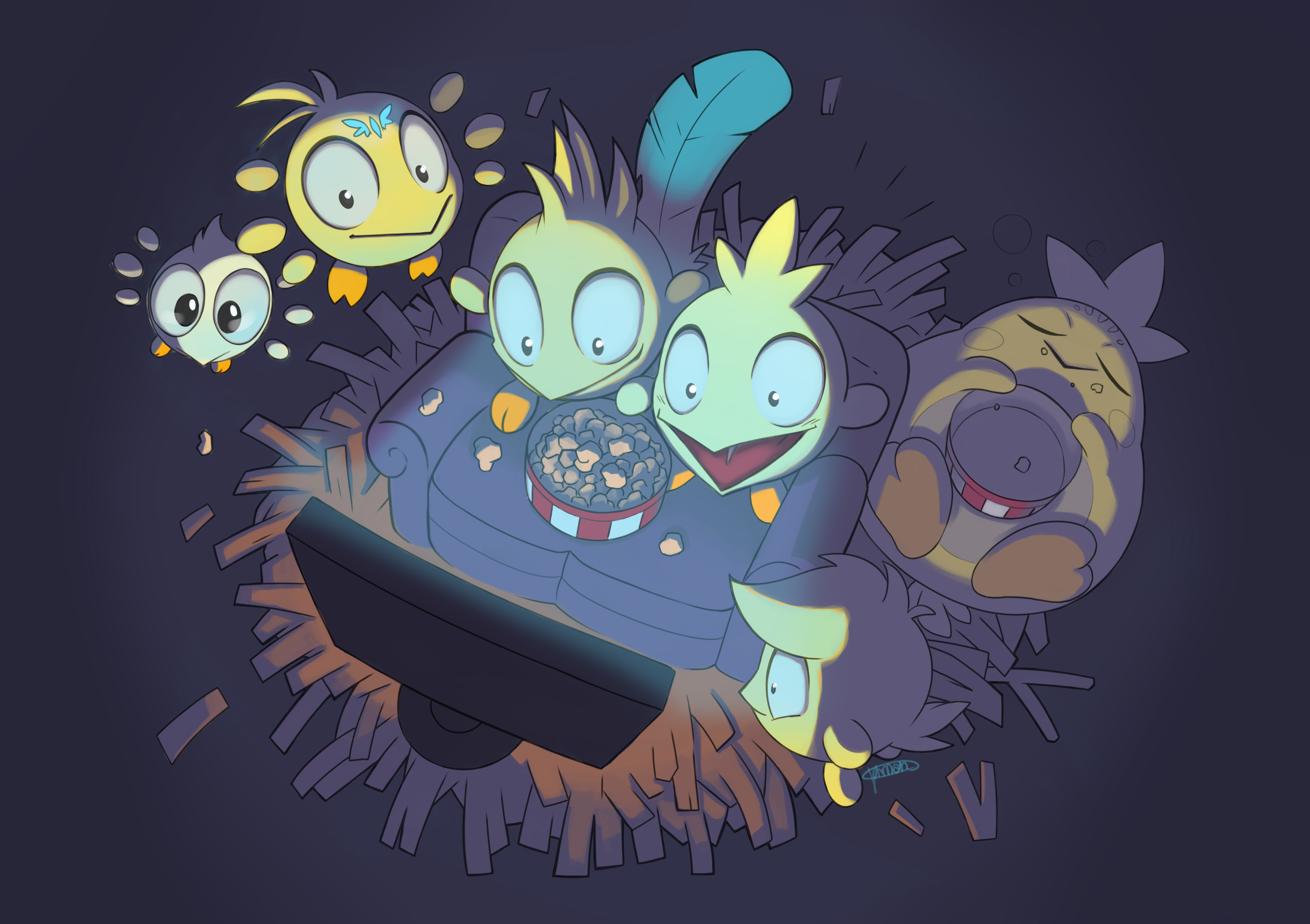 I thought it'd be fun to try my hand at this event, so here's my submission. I coloured it using my alcohol markers. Decided to go a bit crazy with some of the tofu colouring lol, my favourite one is the little dark green-blue one with the pale green tuft in the left corner.